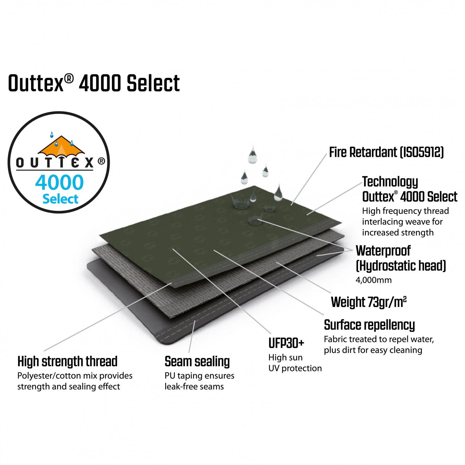 The Avondale 4PA from Outwell has everything you need for a stress-free camping trip with family or friends! It’s a three-room inflatable tunnel tent that offers space for up to four people. It features a flysheet made of the durable Outtex 4000 Select material from Outwell. The tear-resistant polyester fabric has taped seams and a water-repellent PU coating. These, along with the sewn-in, waterproof tent floor, provides protection against the rain. The inflatable Rigid Air System from Outwell makes the tent easy and quick to set up. This, along with the steel poles keeps the tent stable. When it’s really windy out, you can use the Outwell Wind Stabilizer System for extra stability.