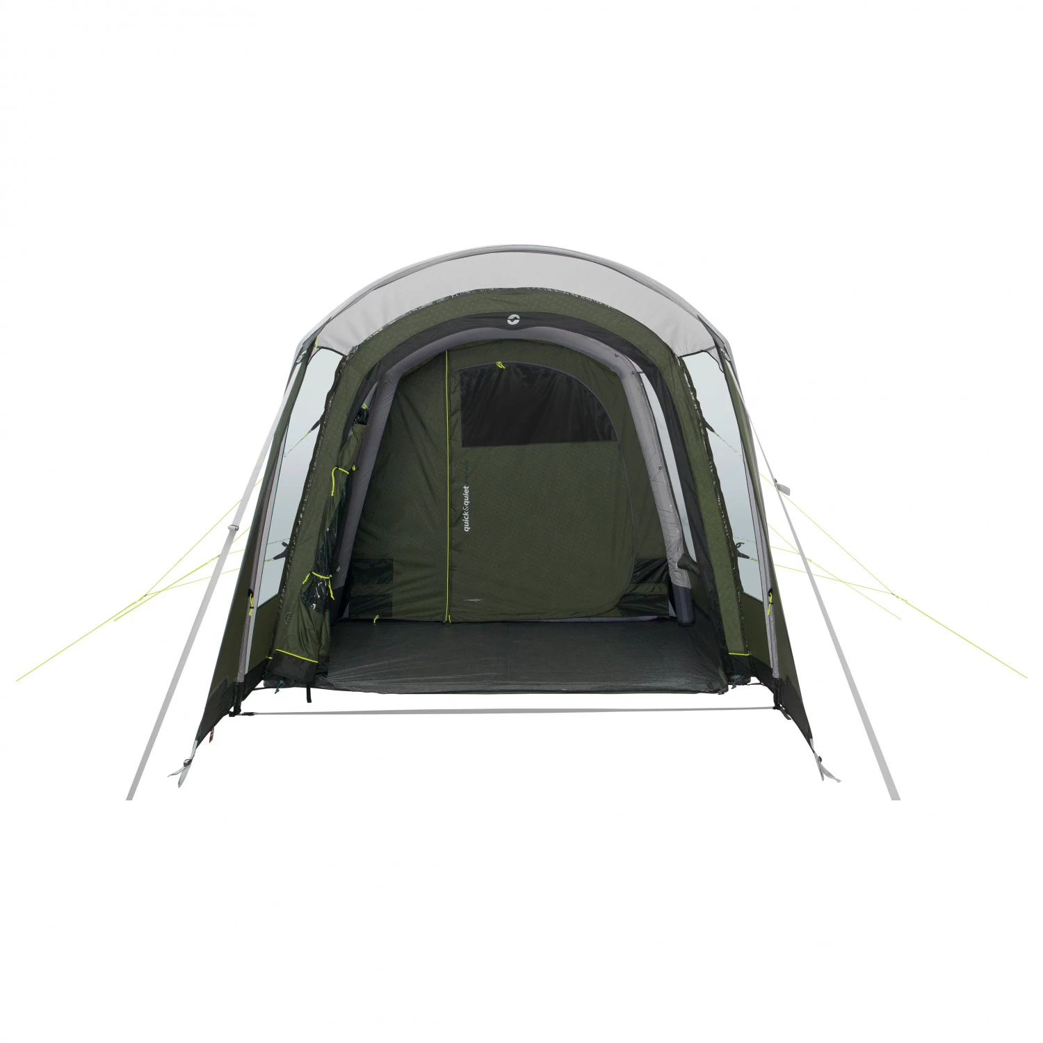 The entrance area is equipped with a canopy and a large Quick & Quiet mesh entrance door. The inner tent is made of breathable polyester and is divided into a living area and a separate sleeping cabin. The sleeping cabin has a Quick & Quiet door and can easily accommodate up to three people. The dark fabric and the ventilation system on the back ensure a pleasant climate for sleeping. The versatile HookTrack hanging system allows you to hang lights and lighter items weighing up to 1.5 kg. Other small items can be stowed in the mesh pockets. It’s completed by cable openings to power your electronics. You’ll have a great time camping with the Elmdale 3PA from Outwell.